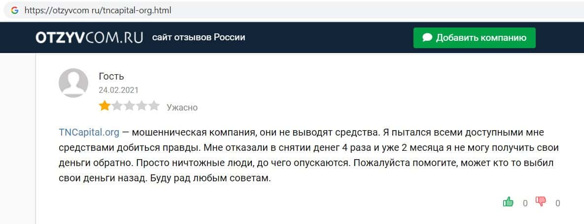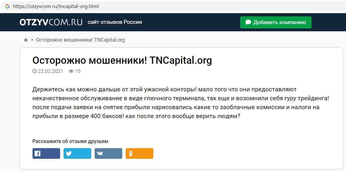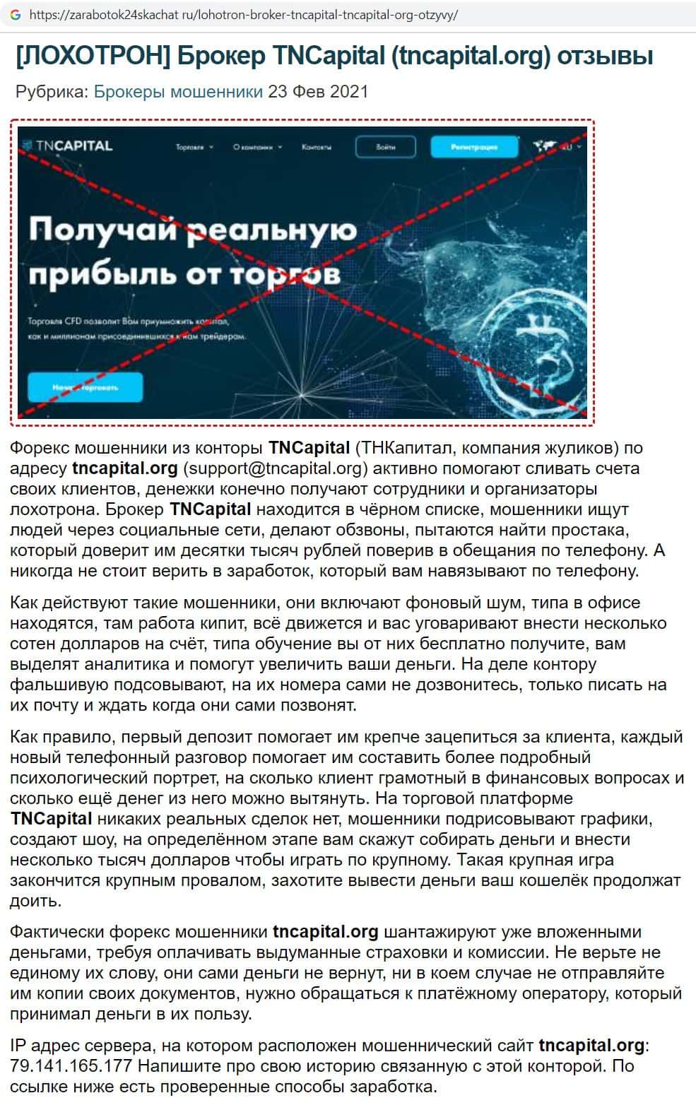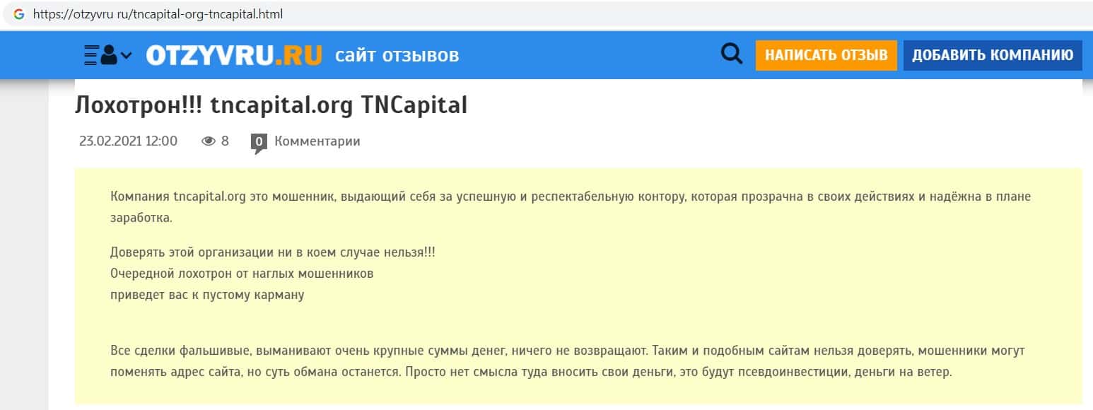 otzyvru ru - сайт с информацией о жуликах TNCapital Org