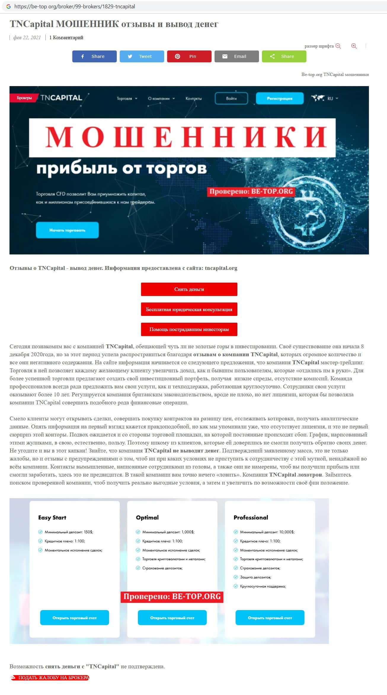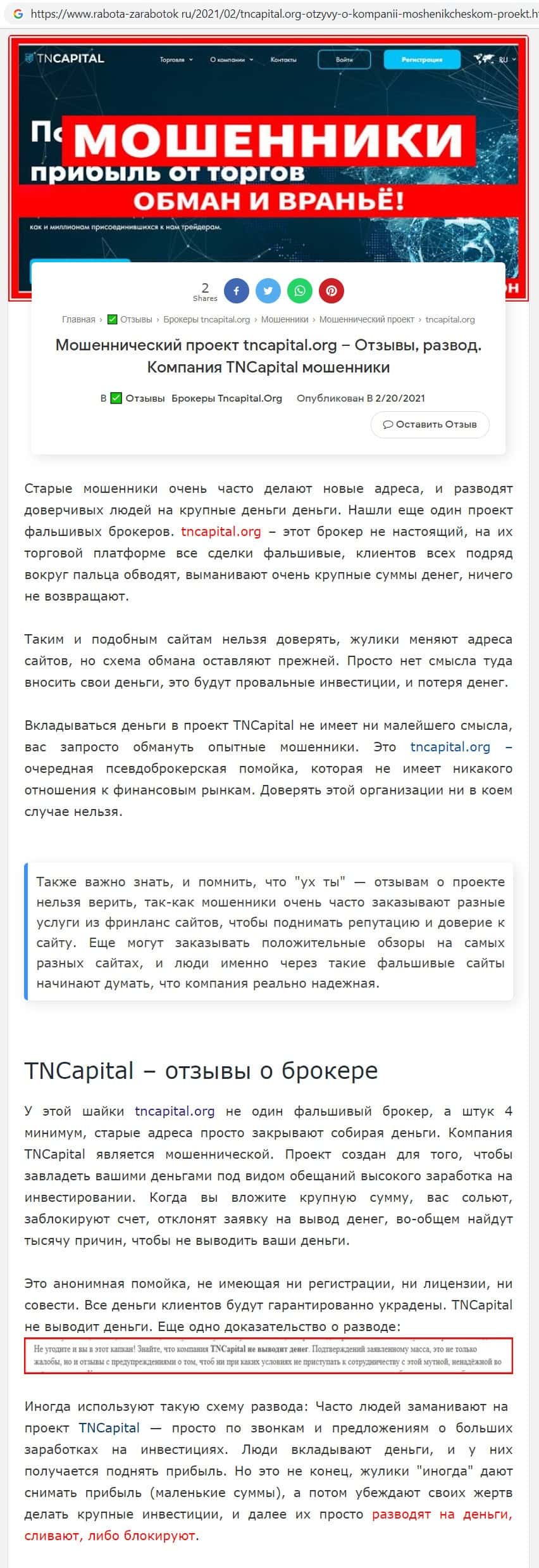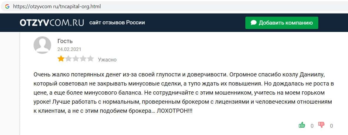 otzyvru ru - сайт с информацией о жуликах TNCapital Org