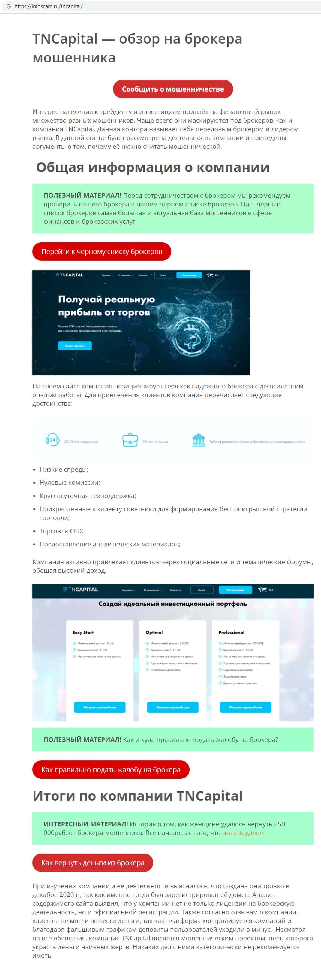 - Информация о главном интернет ресурсе аферистов TNCapital Org