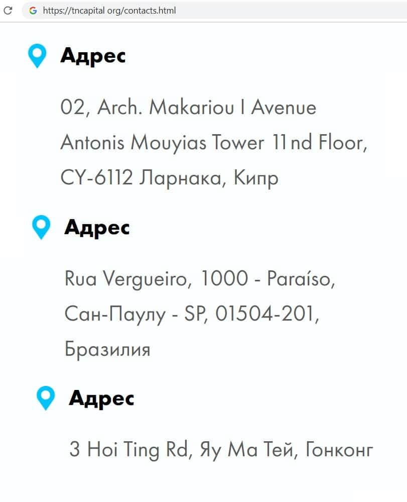 Так же мошенники TNCapital Org указали Кипр местом своей регистрации, это говорит о том, что перед нами обыкновенный оффшорный разводила, который разводит клиентов.