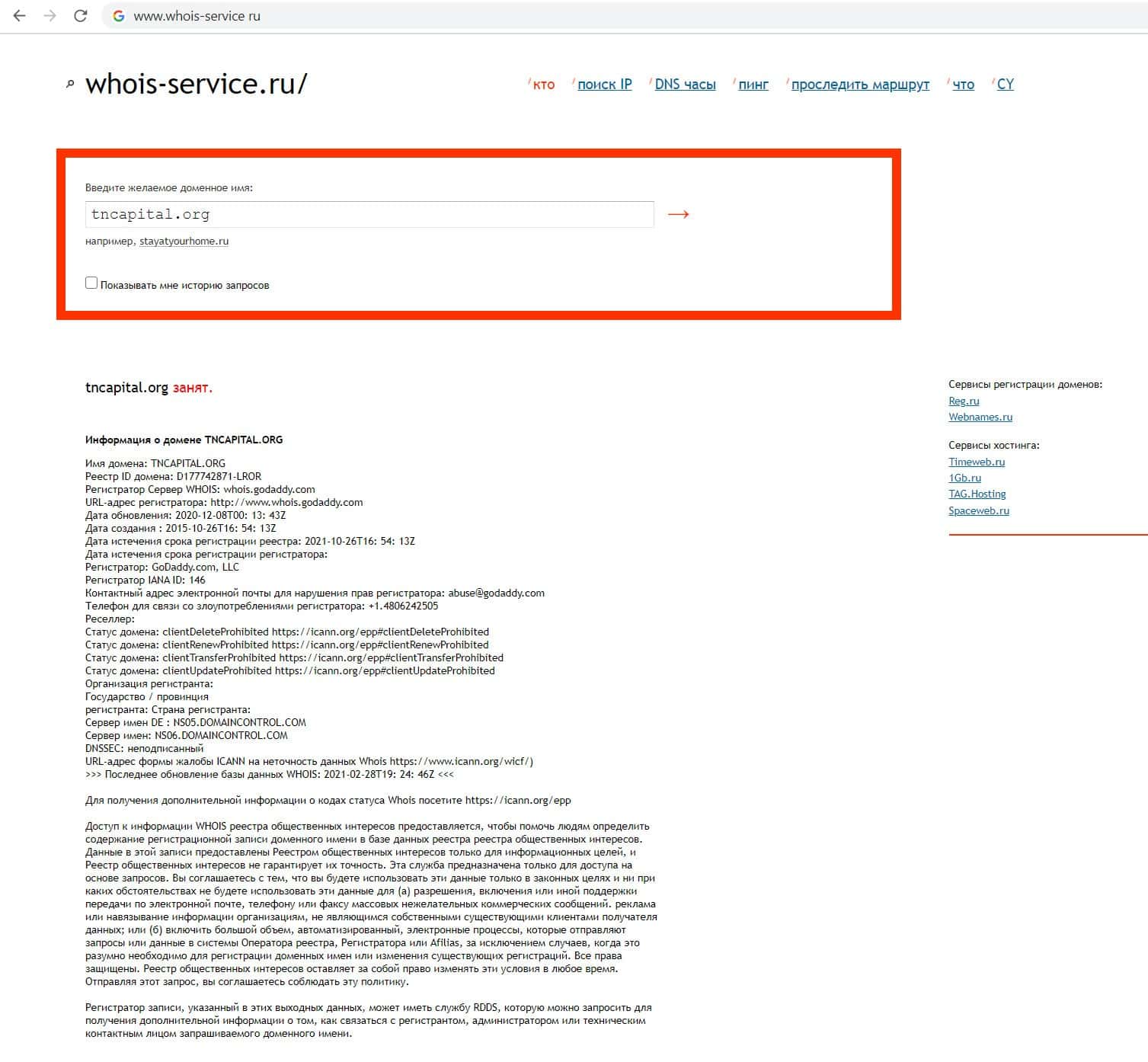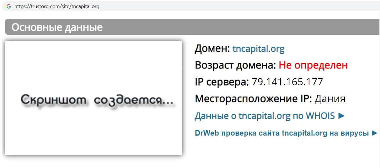 Кому принадлежит доменный адрес конторы жуликов TNCapital Org?