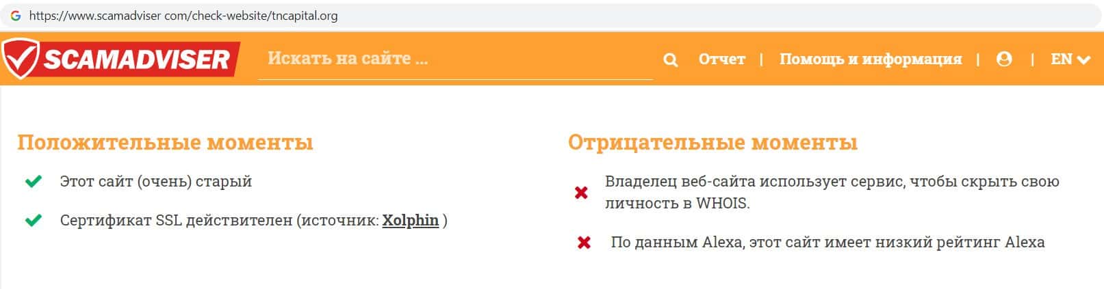 - Мнение интернет ресурса о сайте мошенников ТН Капитал