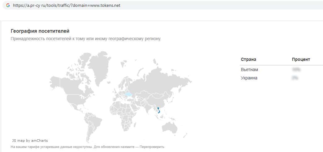 Мы проверили компанию жуликов Токенс Нет на посещаемость. Количество пользователей оказалось довольно не маленьким, но настораживает то, что фирма представляет торговлю на европейской крипто бирже, но только почему то лишь для двух стран. Почему такая огромная компания, сайт которой не поддерживает даже русский язык не предоставляет услуги для стран кроме Украины и Вьетнама?