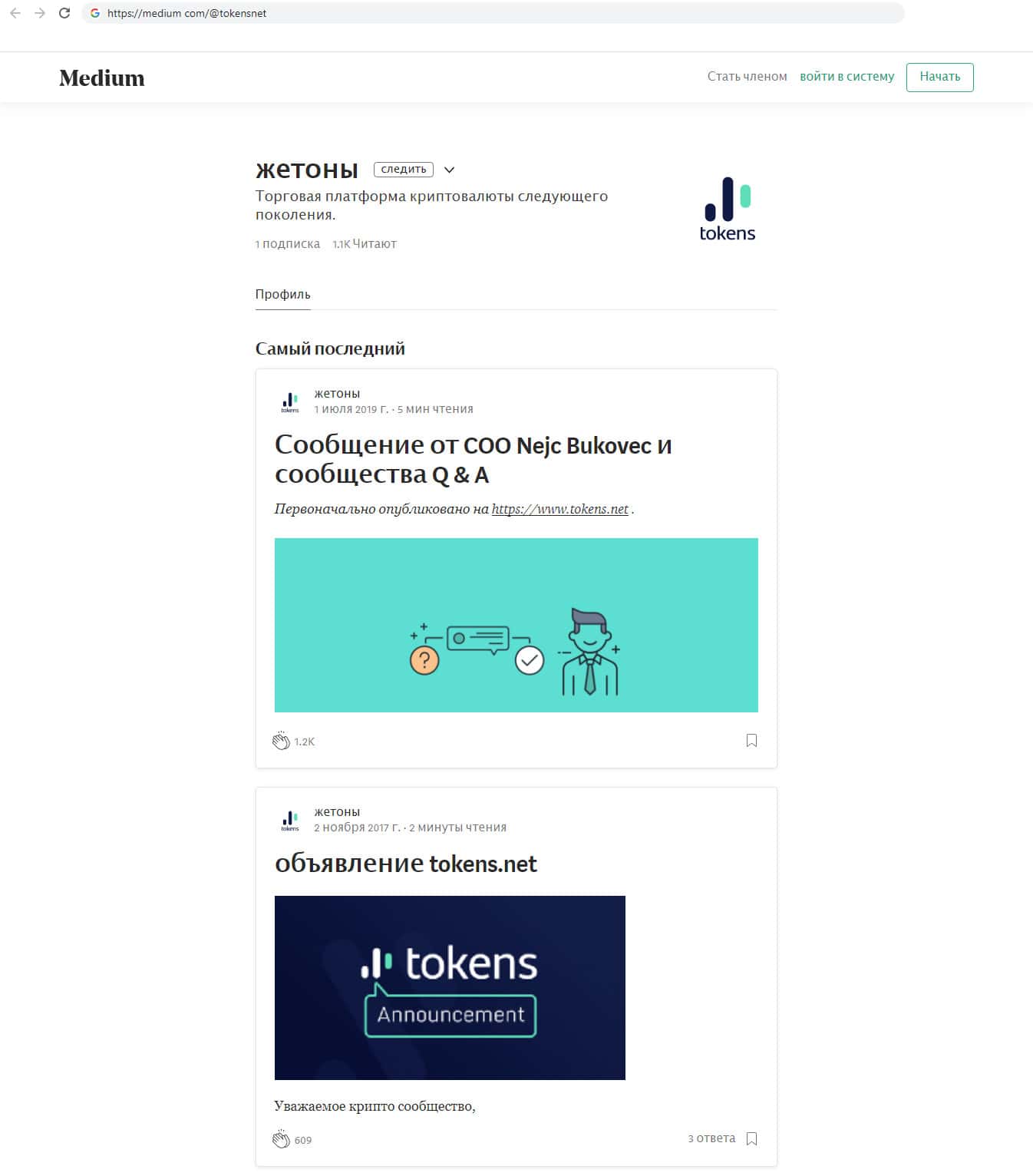 Разводили Tokens Net зарегистрировали свою страницу на платформе социальной журналистики medium com. Там они публикуют некие новости, и набрали более тысячи читателей, но опять же это всё не настоящие читатель, а просто проплаченные пользователи, которым заплатили за то, что бы они подписались.