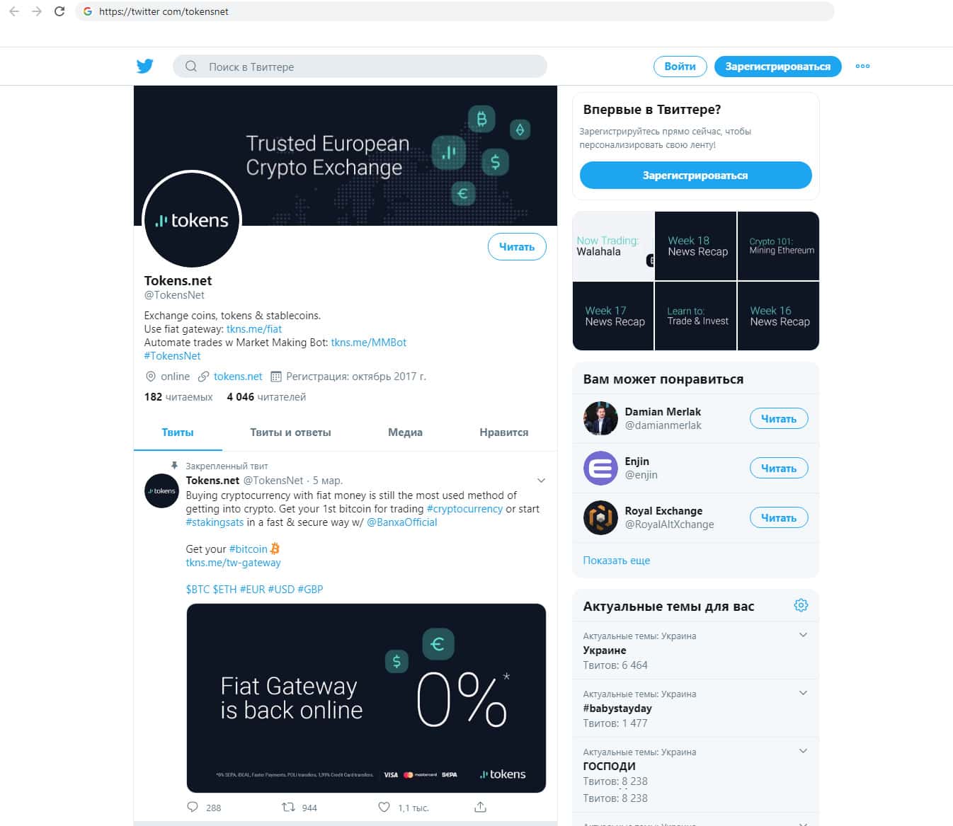 В твитете так же жулики Токенс Нет завели страницу, и набрали более 4000 подписчиков, но цифры очень похожи с фейсбуком, так что не стоит исколючать вариант с тем, что компания просто накрутила подписчиков, что бы просто казаться популярнее, так как фирма с таким опытом и стажем работы должна была обзавестись миллионами клиентов.