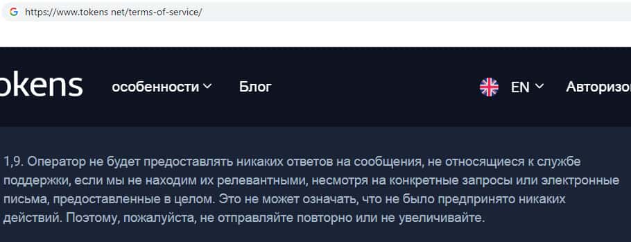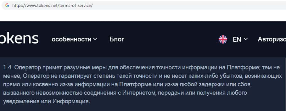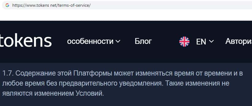 - Возмутительные пункты клиентского соглашения с аферистами Tokens Net