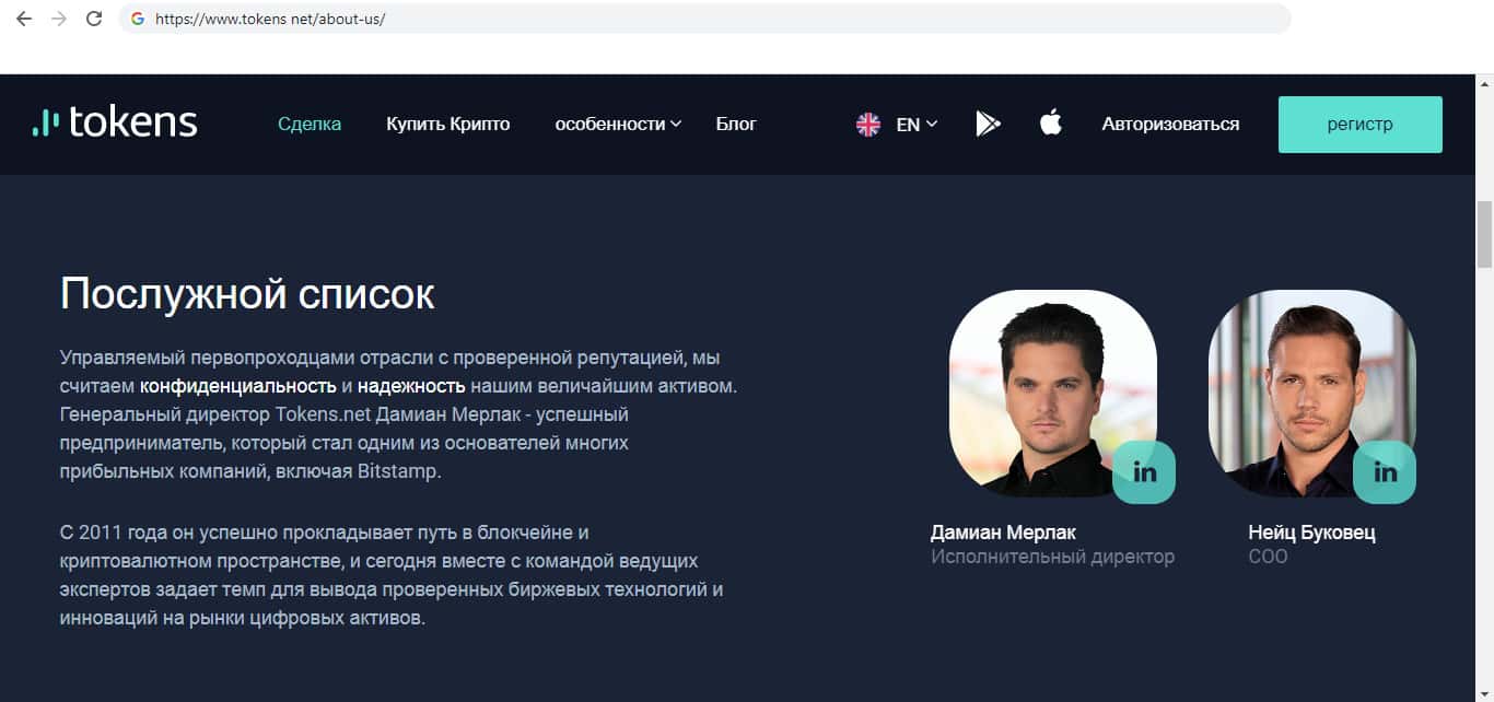 Информация о руководстве компании лохотронщиков Токенс Нет