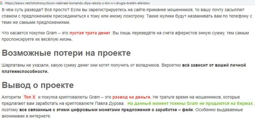 Ton-X Net - криптомошенники, пытающиеся залезть в карман к доверчивым гражданам России и стран СНГ. Они раскручивают идею новой криптовалюты Gram, анонсированной создателем мессенджера Телеграм, Павлом Дуровым. Жулики якобы предлагают уникальную возможность заработать, а вместо этого воруют вклады и исчезают.