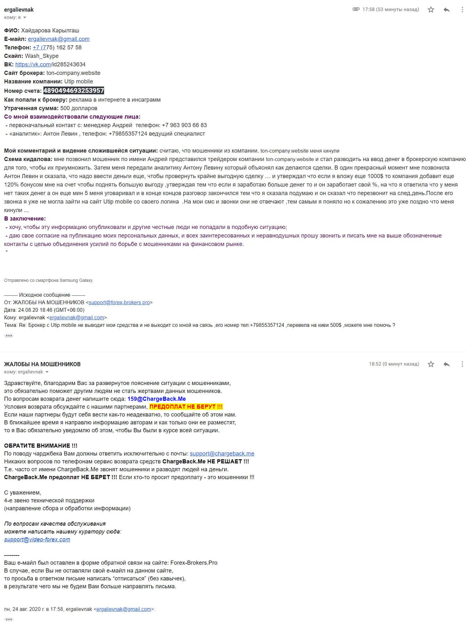 Подробная жалоба на аферистов Ton-Company Website