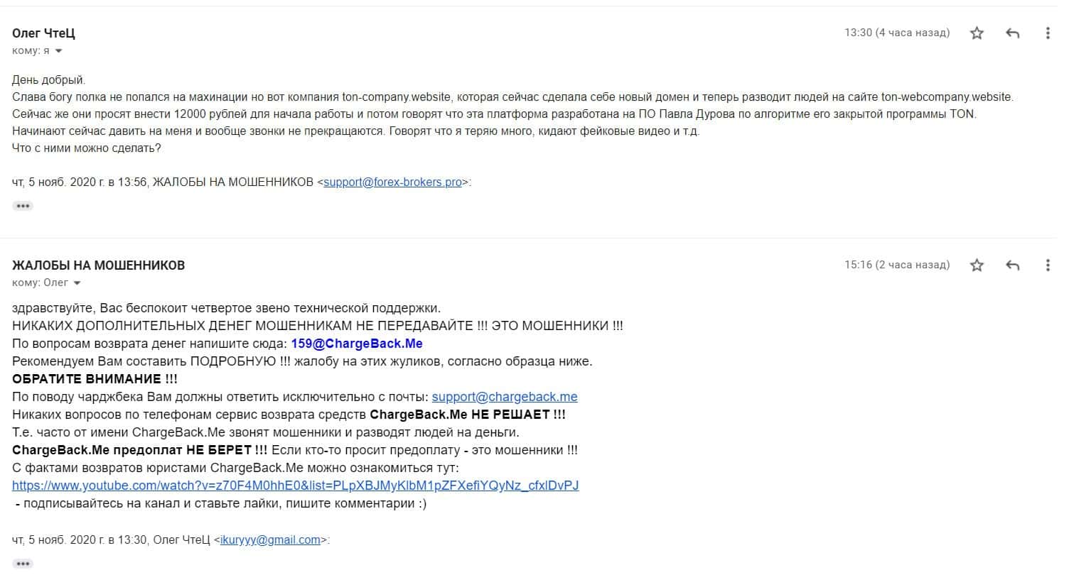 Емайл аферистов Тон Компани: