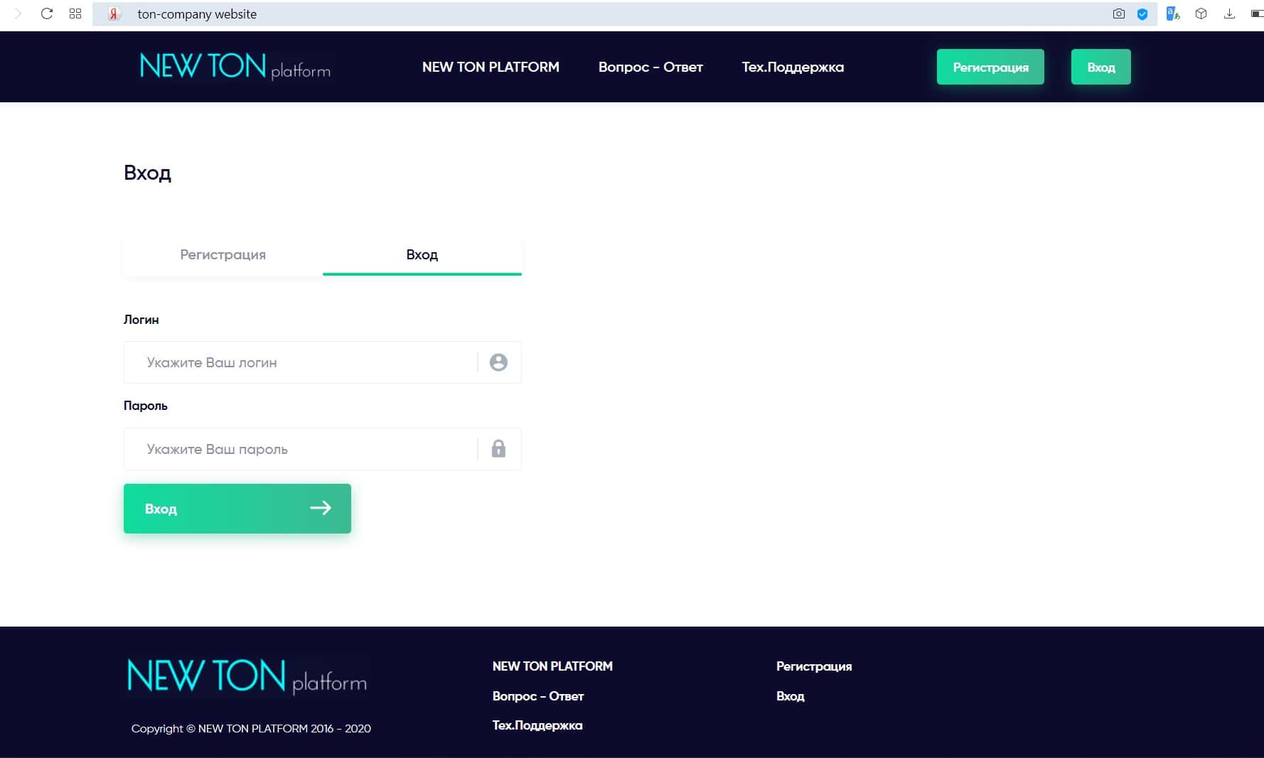 На главной странице сайта конторы Тон Компани нет абсолютно ничего, кроме приглашения к регистрации. Также вы не найдете там никаких данных о компании.