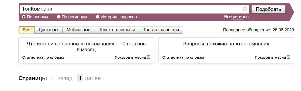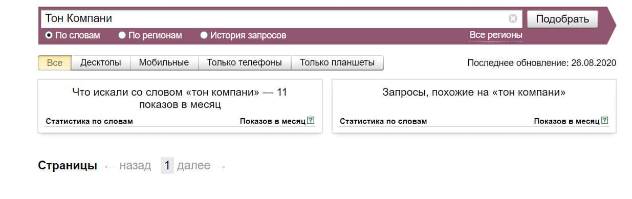 Посмотрим, сколько раз люди искали название бренда "Тон Компани" на русском языке с пробелом: результат 11 показов.