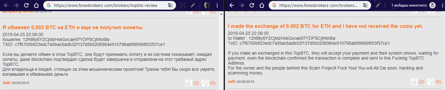 - Отзыв об аферистах TopBTC от очередного кинутого пользователя
