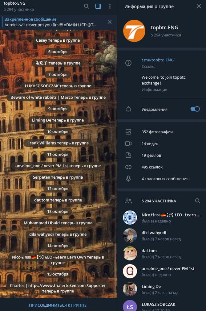Вместо этого у шулеров TopBTC имеется канал в Телеграм, однако активности или публикаций от аферистов Топ БТЦ в нем нету, вместо этого на канал мошенников TopBTC накручиваются подписчики. На изображении, расположенном ниже, вы можете наглядно увидеть внешний вид канала аферистов Топ БТЦ в мессенджере Телеграм.
