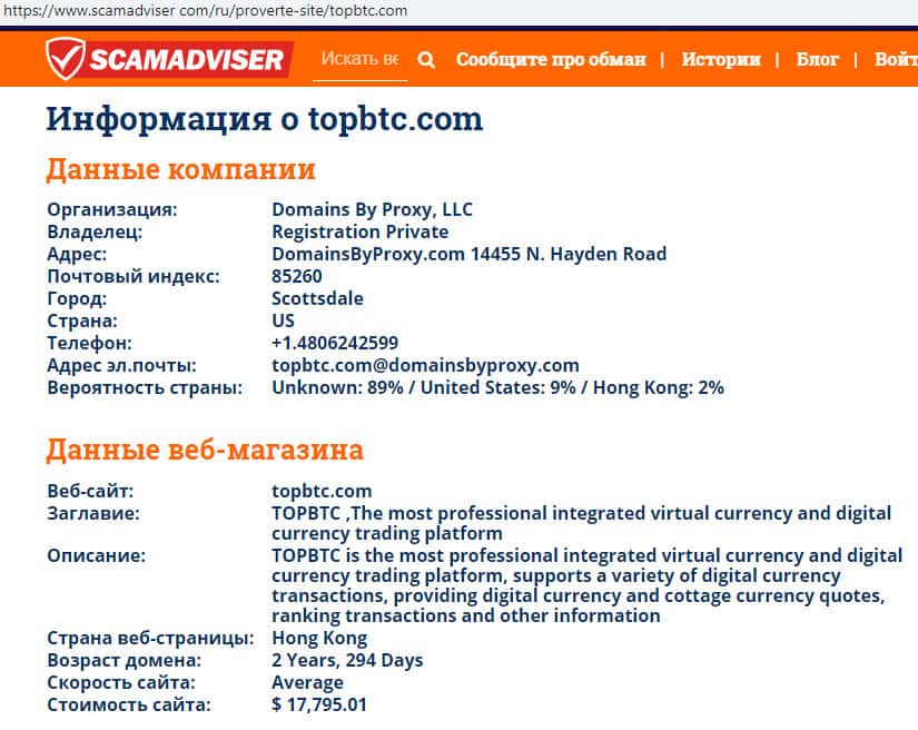 - Как оказалось руководители лохотрона TopBTC предпочитают анонимность