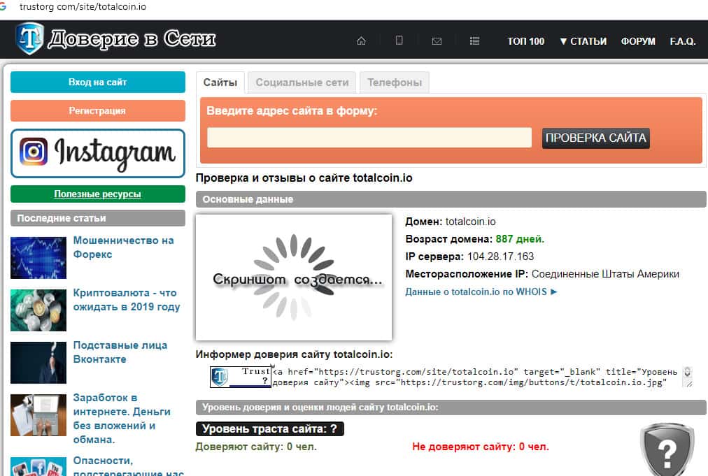 - Лохотрон Тотал Коин скрывает свой айпи в США