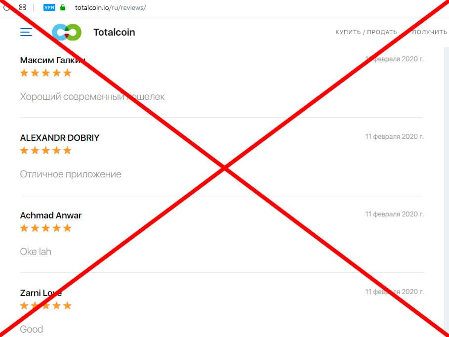 - Аферисты Тотал Коин используют липовые отзывы на своем сайте
