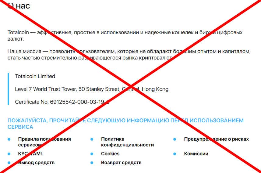 - Политика конфиденциальности шарлатанов Тотал Коин