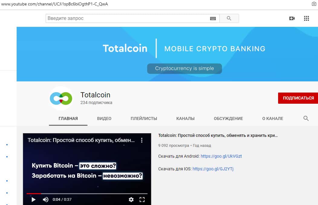 Также мошенники TotalCoin io предлагают посетить их канал в Ютуб, где опубликован целый раздел различной лапши в виде видео-роликов о якобы выгодном инвестировании их сервисом. Таким образом люди развешивают уши и не хотят вникать в суть того, что данный лохотрон кидает на деньги. Вот ссылка на канал youtube com/channel/UCJi1spBc6biOgthP1-C_QwA