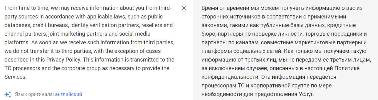 Из следующего раздела политики конфиденциальности шулеров Тотал Коин, сразу становится понятна вышеописанная информация. Шарлатаны даже пишут, что они заботятся, чтобы передать информацию о клиентах всем нуждающимся. А вот критерии вычисления этих нуждающихся, они не предоставили.