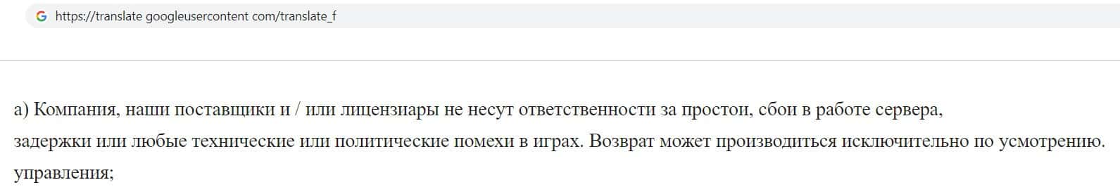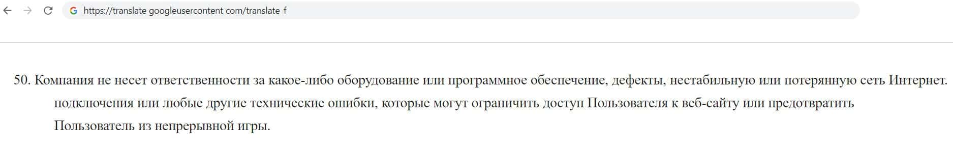 Так же аферисты ToTheMoon Game указали, что не несут ответственности за потерю средств клиента в связи с отсутствием доступа к играм по техническим причинам или неисправности оборудования.