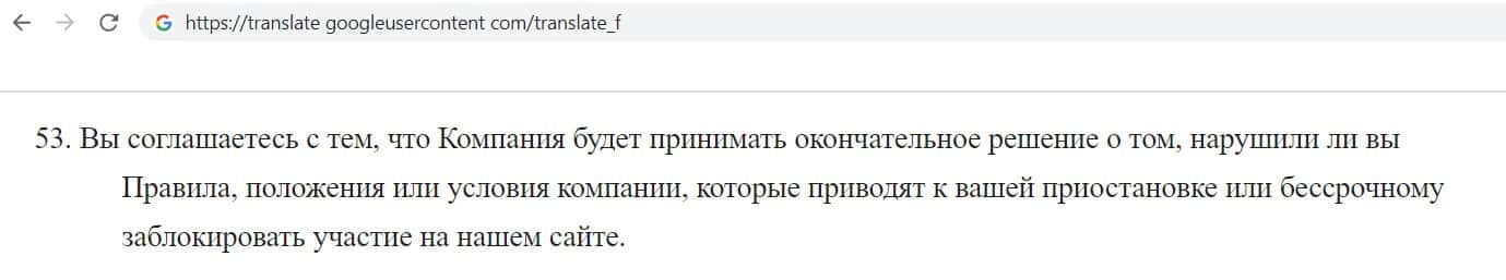 А вот в данном пункте, лохотронщики Ту Зе Мун Гейм указали, что только компания будет решать нарушил ли клиент правила или нет, не давая ему никаких шансов.
