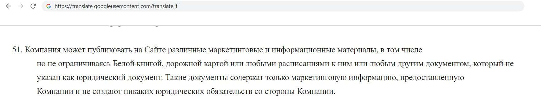 Ещё разводилы ToTheMoon Game указали, что на сайте могут предоставлять пользователям информацию, которая не имеет никакой юридической силы, а компания отказывается от обязательств за такую информацию.