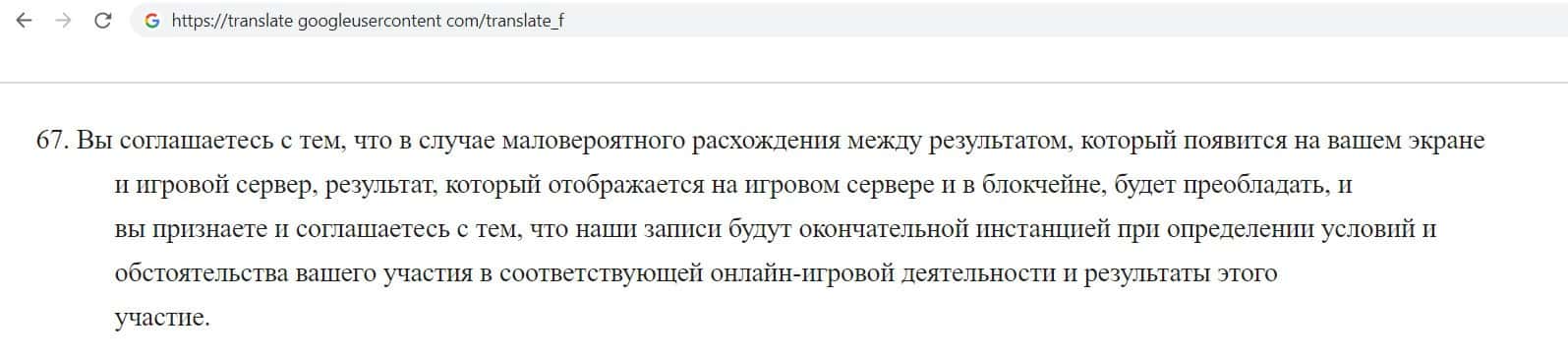 А вот самый интересный пункт, где недоконтора Ту Зе Мун Гейм указали, что результаты игры на экране клиента могут отличатся от результатов на сервере, и признаётся только тот результат, который находится на сервере.