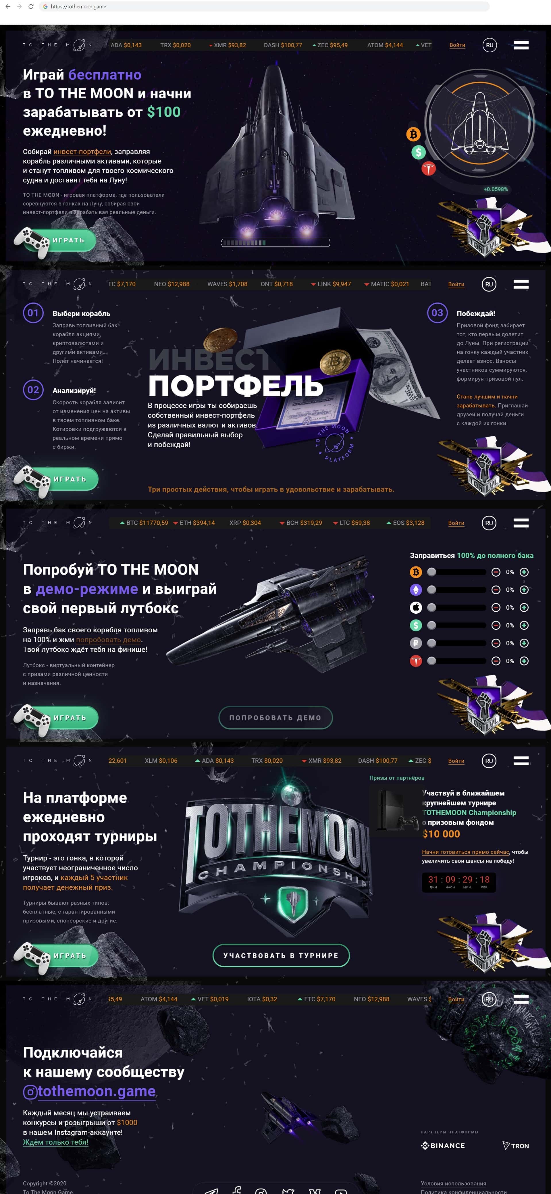 Внешний вид главной страницы сайта мошенников ToTheMoon Game