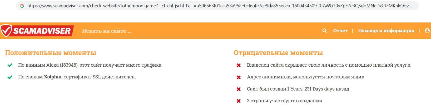 - Мнение сайта scamadviser com о компании финансовых жуликов ToTheMoon Game