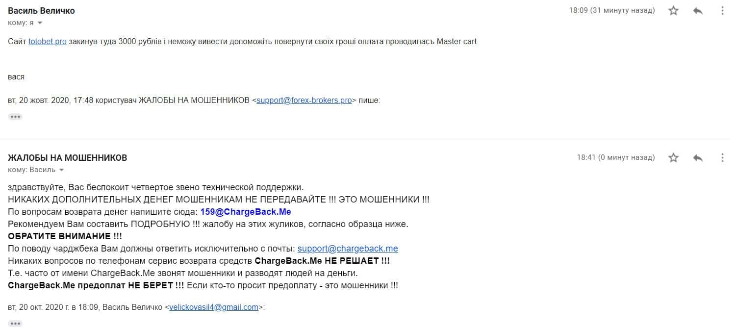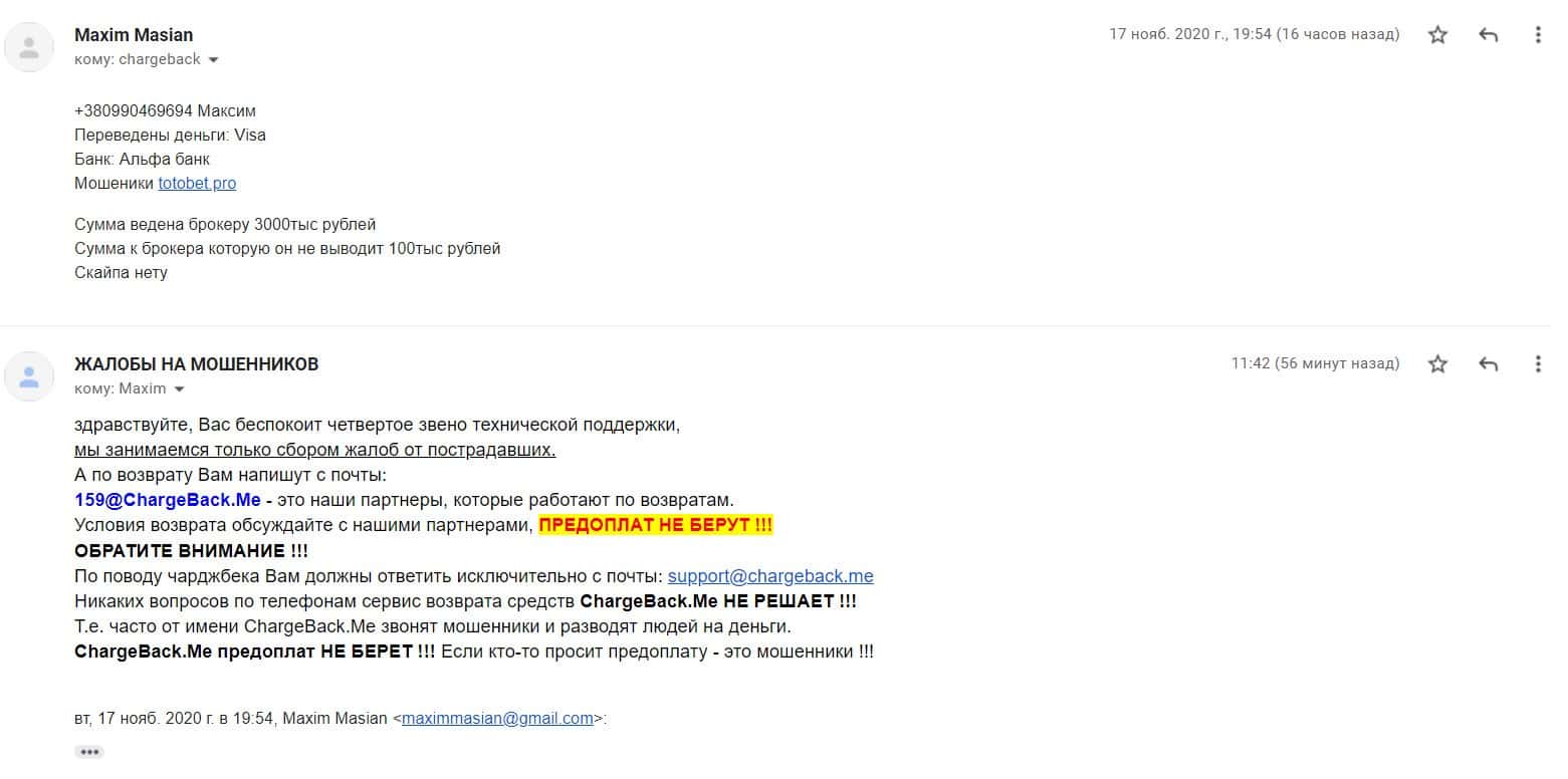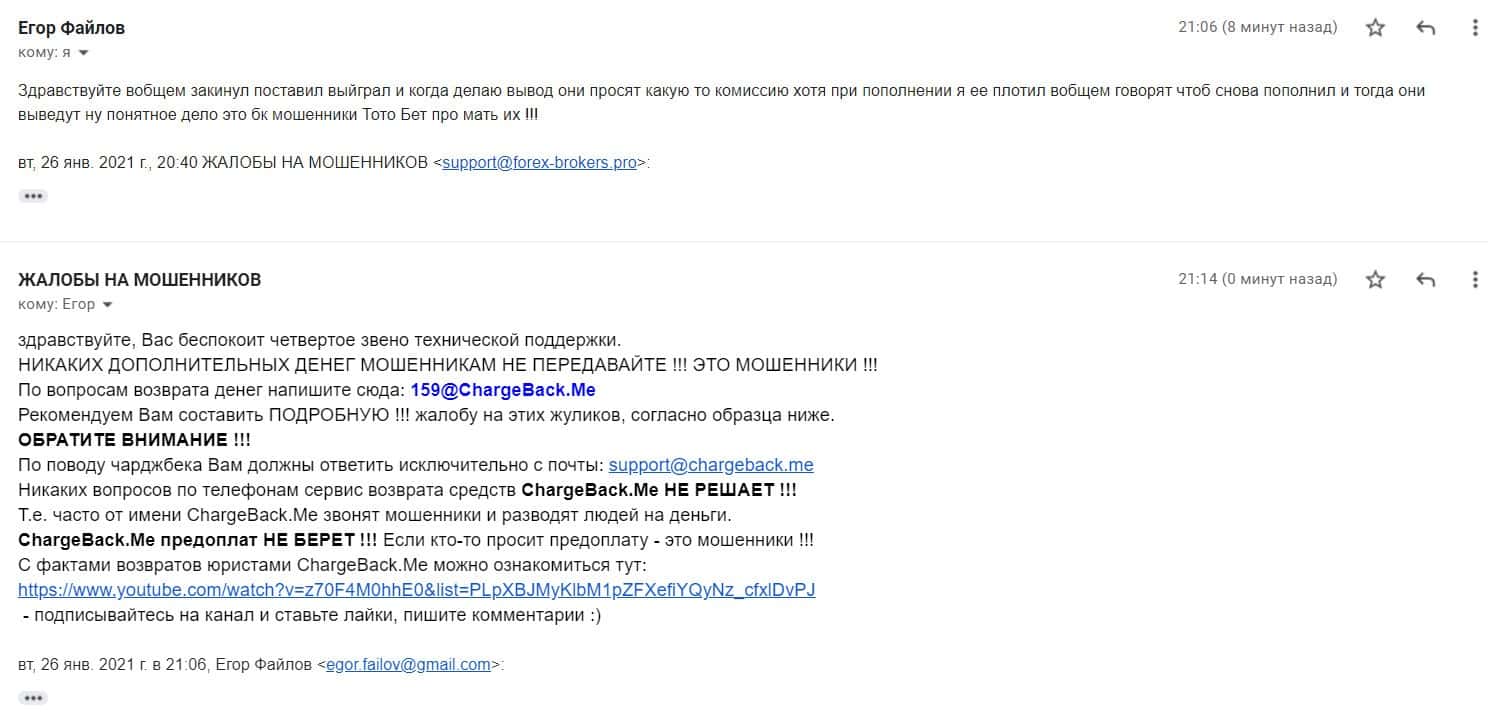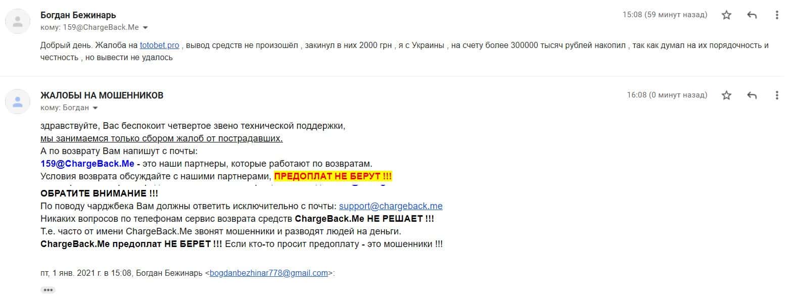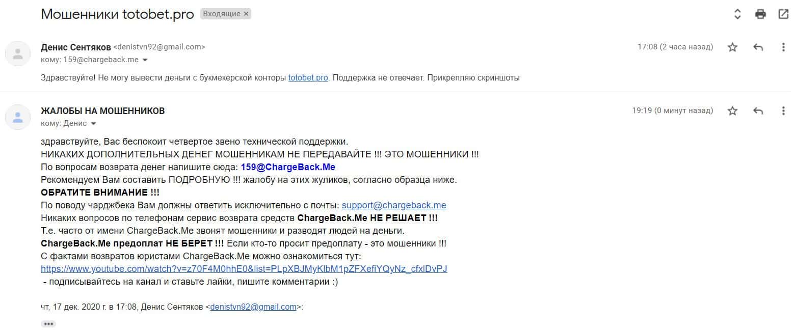 Жалоба на мошенническую организацию ТотоБет