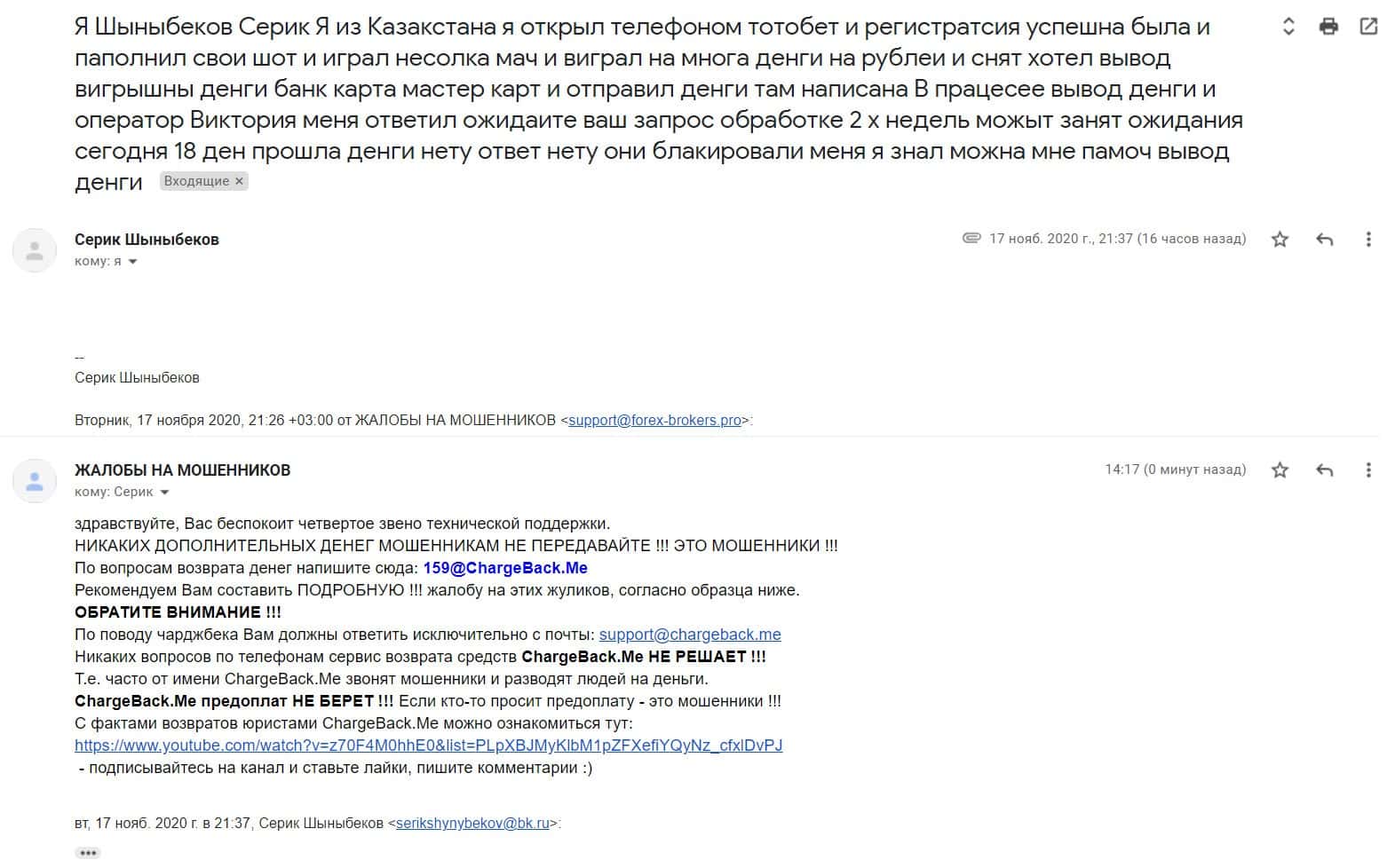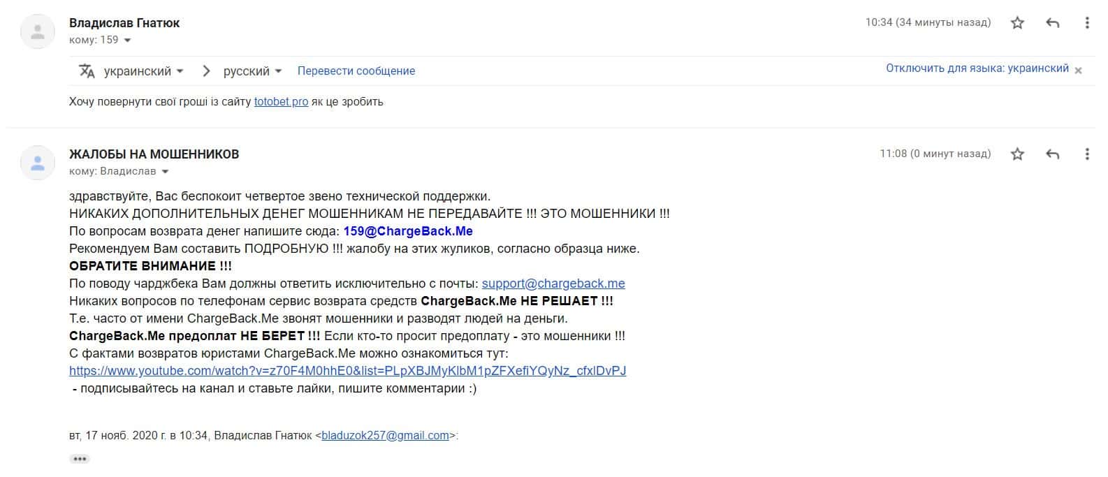 Далее на публикации предлагаем ознакомится с жалобой пострадавшего клиента мошеннической организации Тот Бет, данная контора также кидает людей и из Украина.