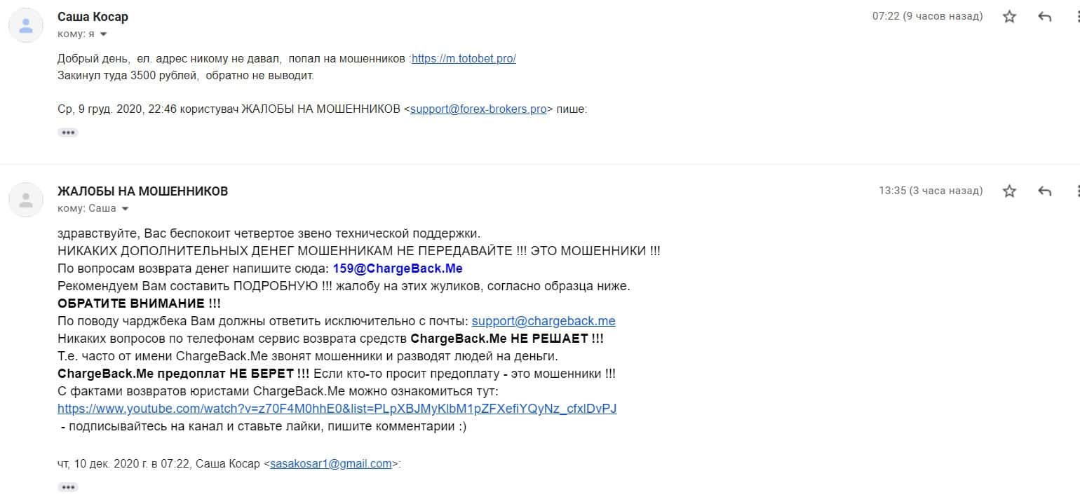 - Жалоба на мошенническую организацию ТотоБет