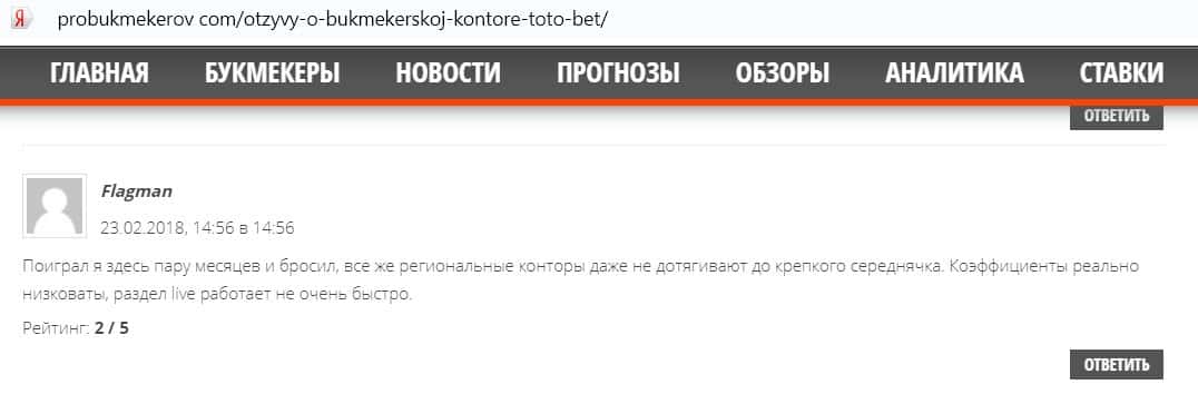 - Очередная жалоба на букмекерскую контору Тото Бет