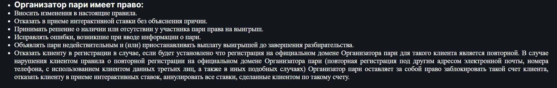 В разделе о правах букмекера организация Тото Бет говорит, что имеет право изменять настоящий договор по своему желанию и отказать игроку в приеме ставки без причины.