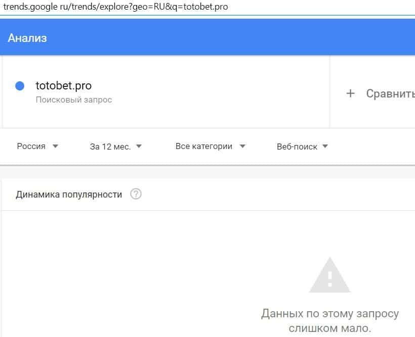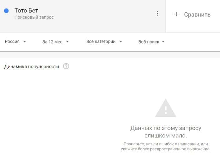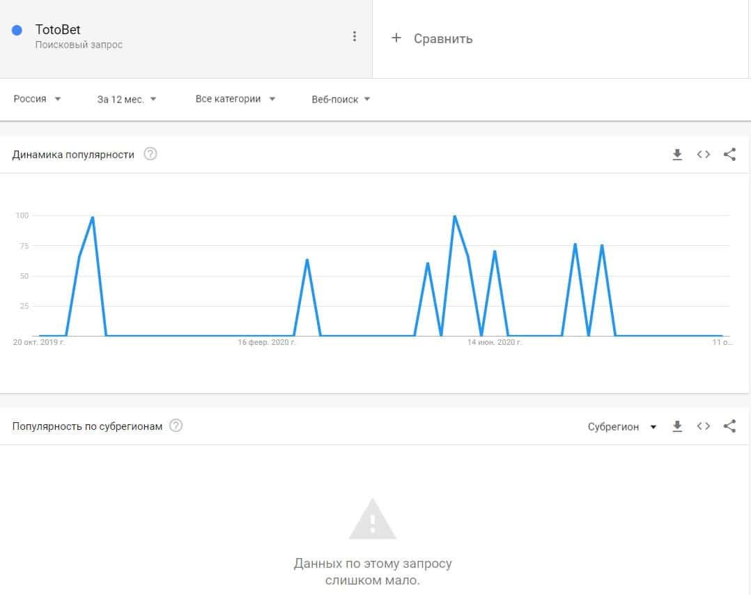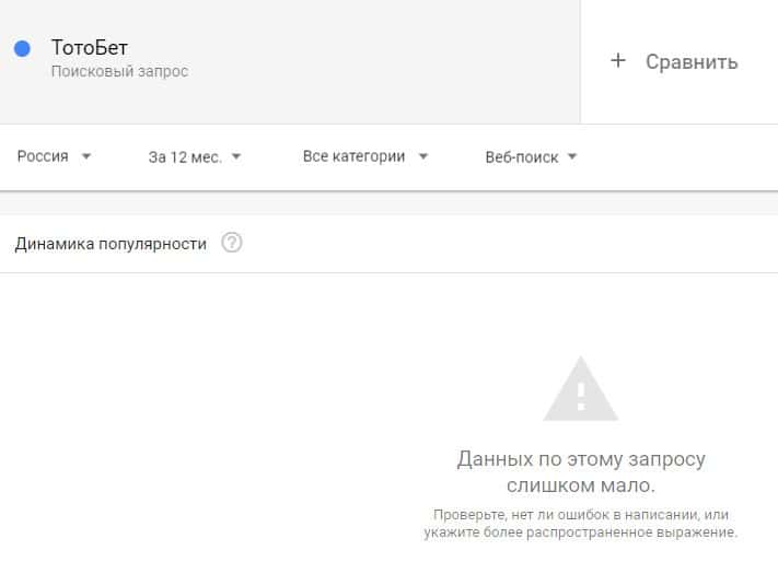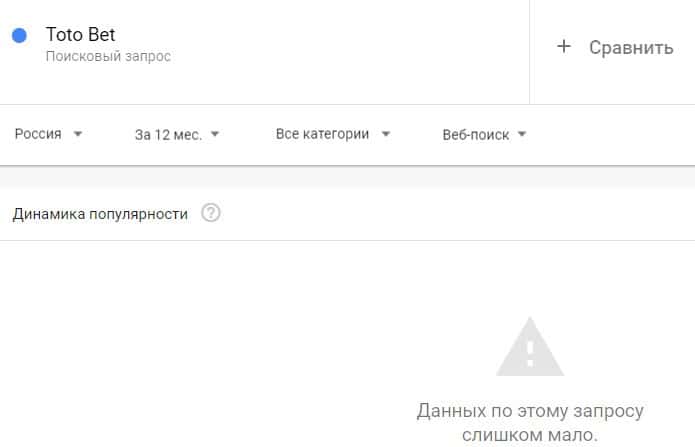 Название бренда "ТотоБет" на русском языке без пробела люди не пытались найти в поисковике Гугл.