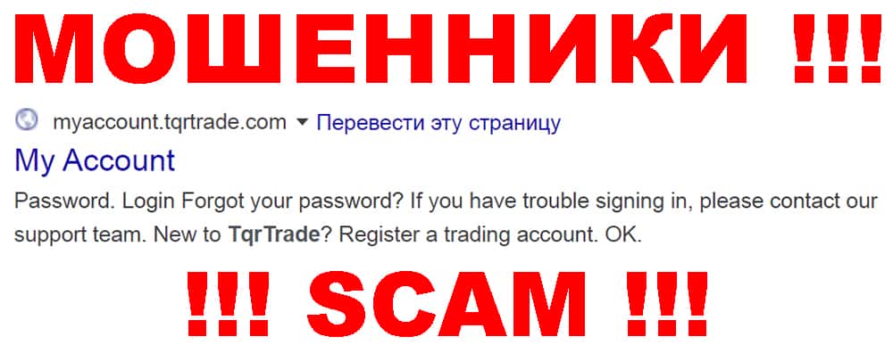 ТиКьюАр Трейд - очередные мошенники сети интернет, которые занимались наглым разводом наивных пользователей сети интернет под банальным предлогом торговли форекс, в ходе которой шулера TQR Trade кидали клиентуру, а после нагло соскамились. В связи с этим иметь дело и сотрудничать с аферистами по типу ТиКьюАр Трейд определенно не рекомендуем !!!