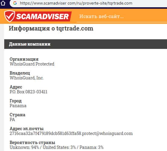 scamadviser com - сервис для определения технической информации о сайте жуликов TQR Trade