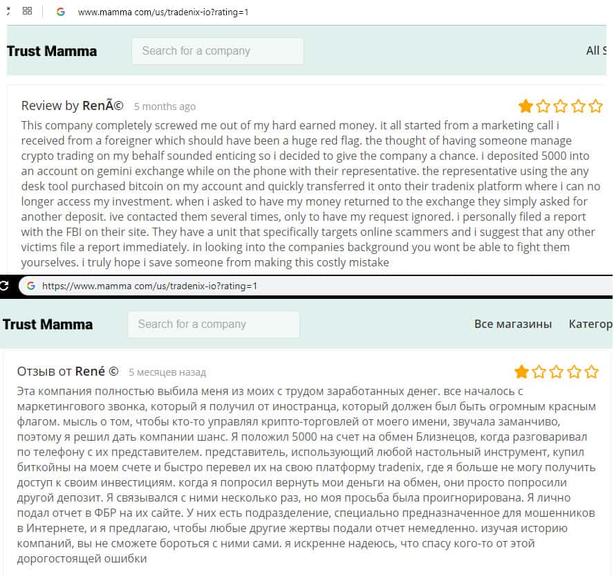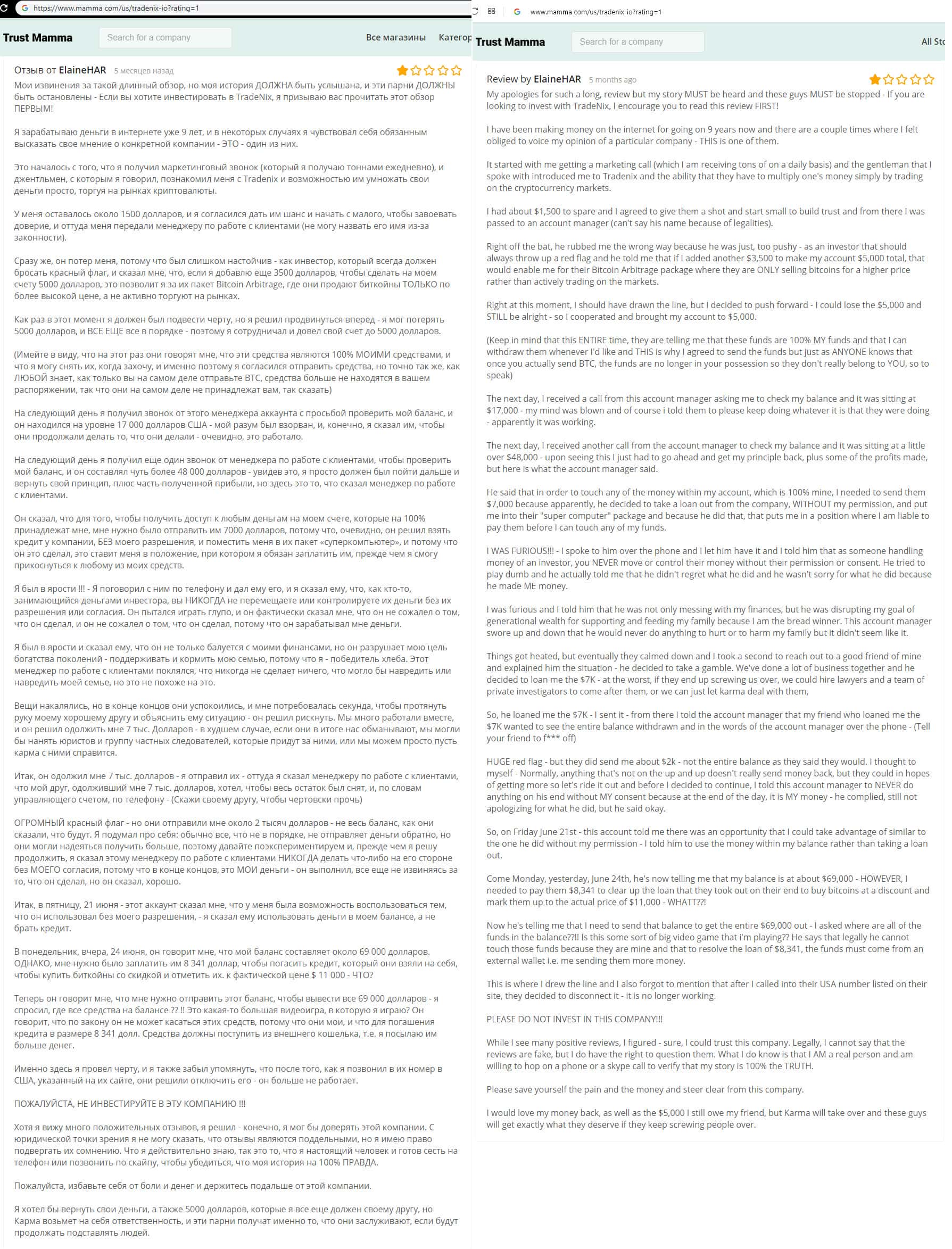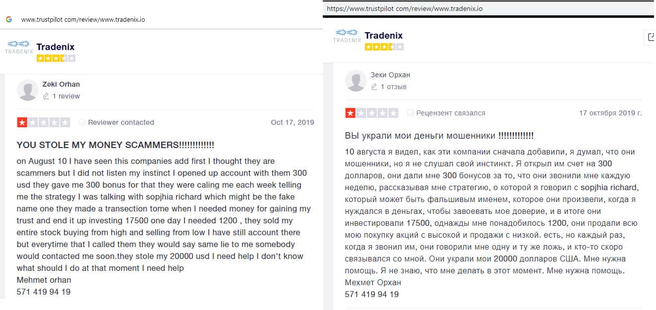 В данном отзыве человек рассказывает, как у него украли огромную сумму денег в мошеннической конторе Tradenix. Жулики запарили ему мозги и смогли вытащить порядка 20 000 долларов США. Теперь он ищет помощь, так как сам не сможет справиться с возвратом украденного из лап этих жуликов.
