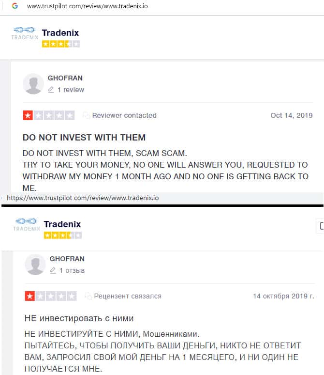 Очередной бывший клиент криптовалютной конторы Tradenix призывает людей не инвестировать туда деньги, так как, если вы это сделаете, то уже никогда не сможете вернуть их обратно. Человек проверил на себе и попробовал вывести свои вложения. Прошло уже больше месяца и никто даже не выходит на связь.