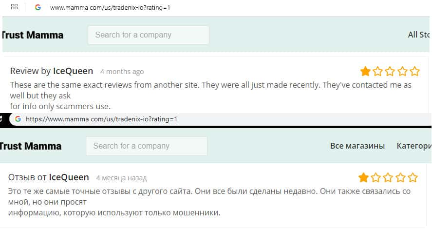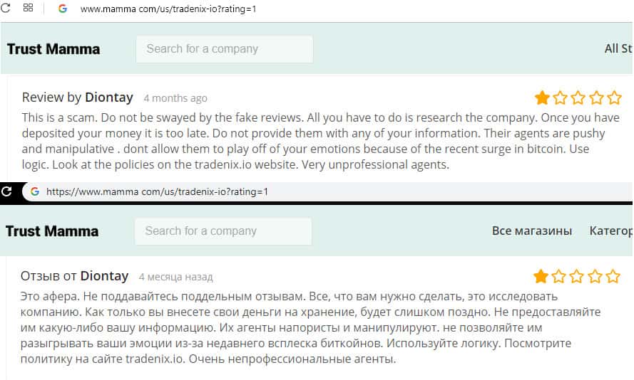 - Криптовалютная контора Tradenix занимается подделкой отзывов