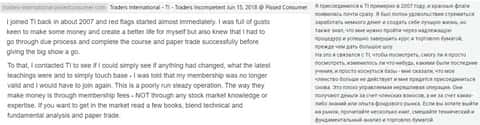 - Отзыв на одном из трейдерских форумов о мошеннической организации Traders International