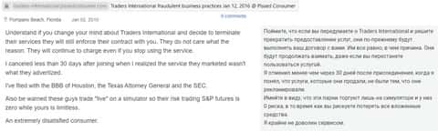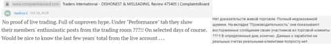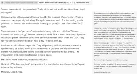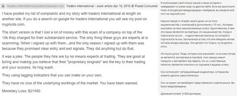 Самое страшное то, что отзывы о данной шарашке появляются также в русском сегменте Сети. Энтузиасты веб-трейдинга не только на Западе но и у нас предупреждают – сотрудничество с Traders International приведёт лишь к потере всех вложенных средств, не связывайтесь с ними!