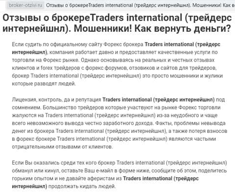 Статья-отзыв о шарашкиной конторе Трейдерс Интернейшнл