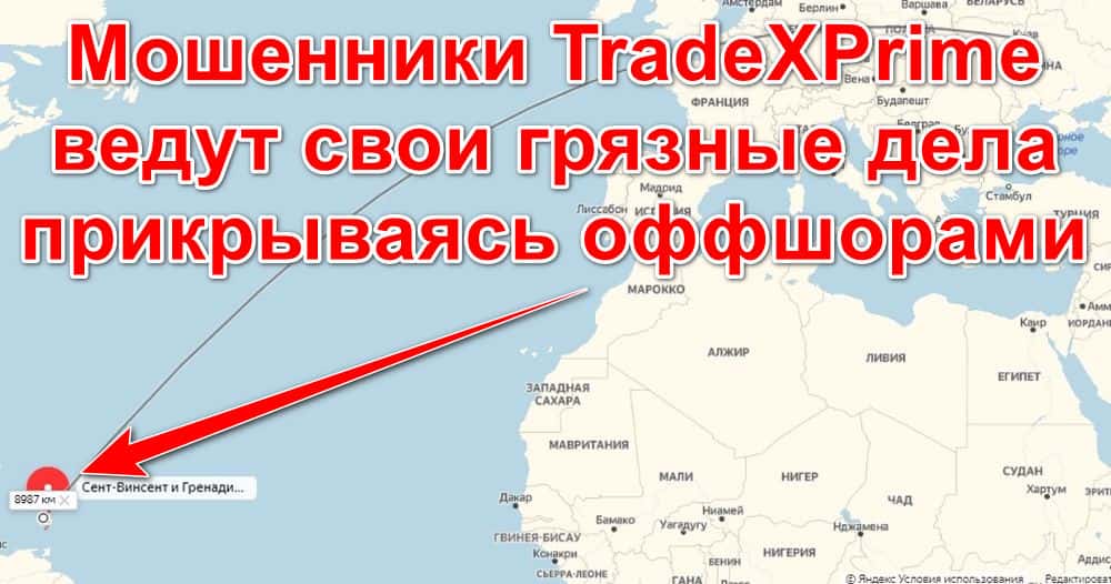 Все дело в том, что жулики TradeXPrime имеют регистрацию в оффшорном государстве Сент-Винсент и Гренадины, а значит к ответственности по закону привлечь их будет не просто. Авантюристы TradeXPrime обитают по адресу: Suite 305, Griffith Corporate Center Beachmont PO1510 Kingstown - Saint Vincent and Grenadines.