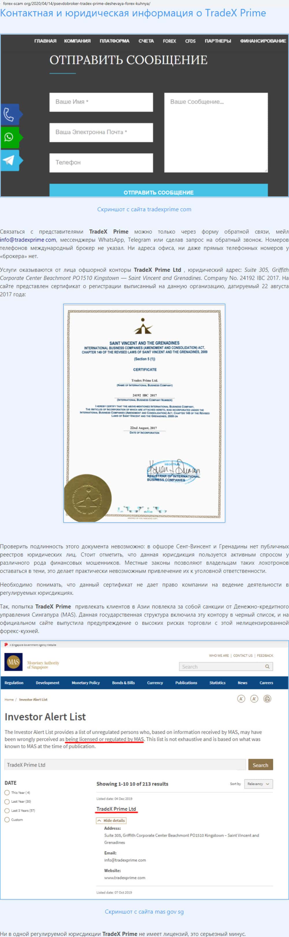 Денежно-кредитное управление Сингапура подтвердило отсутствие лицензии и регуляторов у шарашкиной конторы Трейд Икс Прайм. Липовый дилинговый центр Трейд Икс Прайм, по информации с официального ресурса государственного управления финансового регулирования MAS, внесен в список запрещенных организаций.