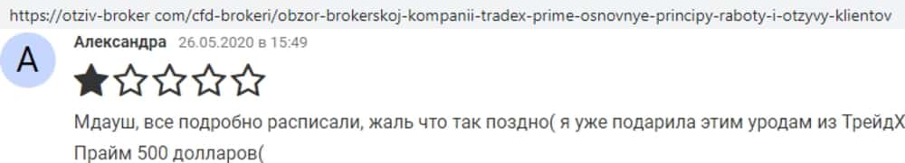 - Жулики Трейд Икс Прайм украли у своей экс-клиентки 500 долларов