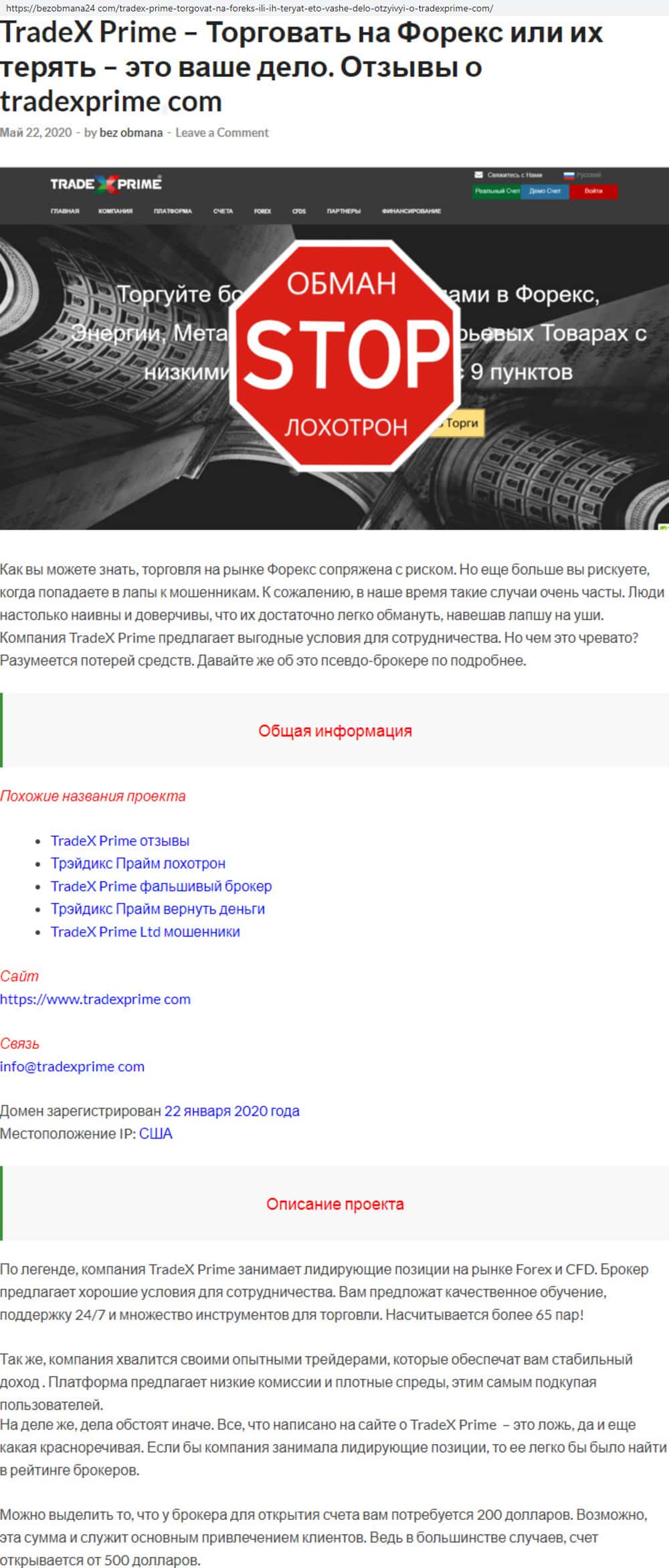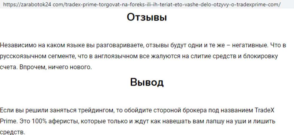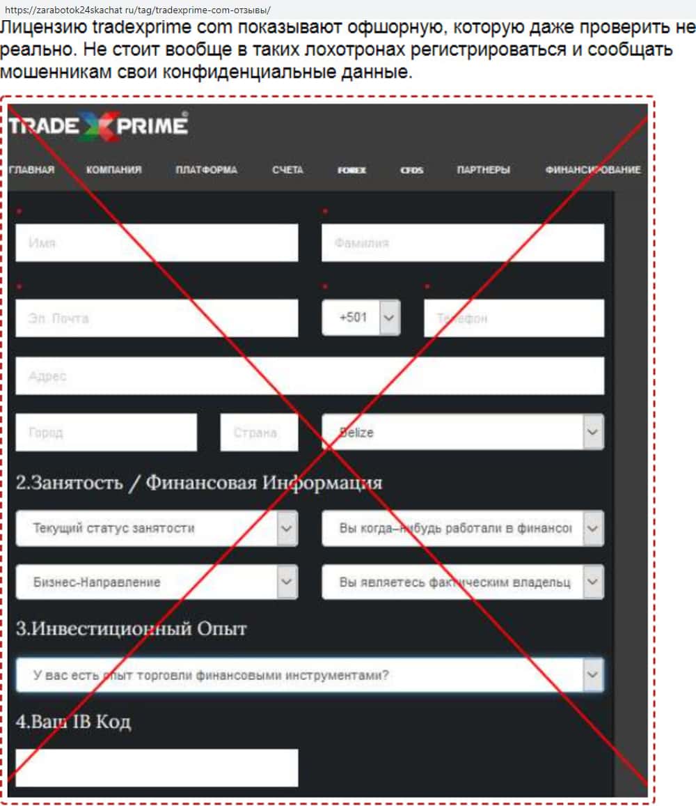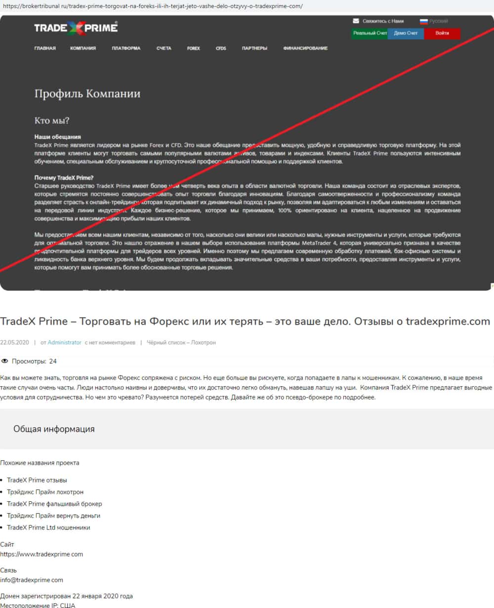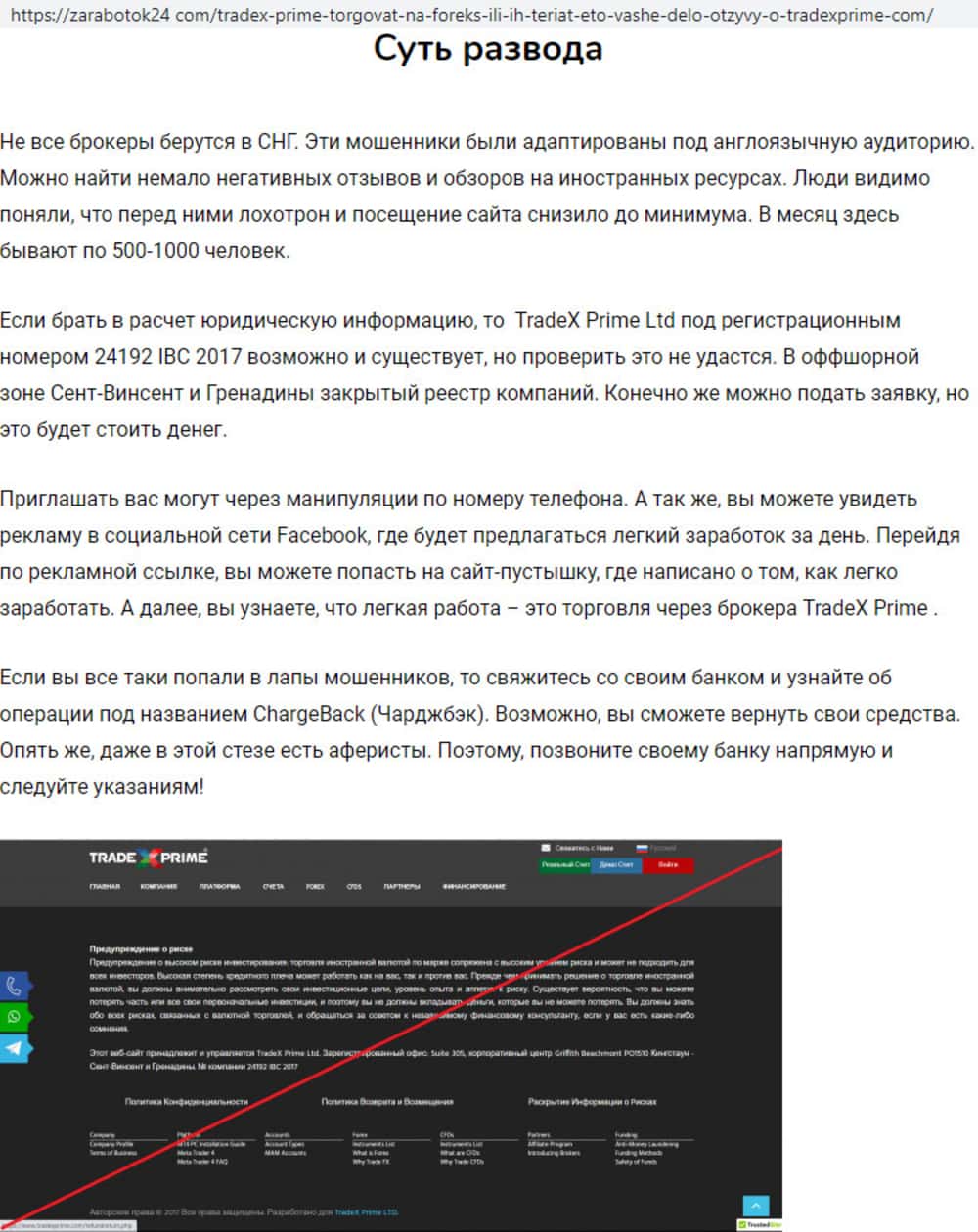 tradexprime com - официальный недостраничник мошенников Трейд Икс Прайм