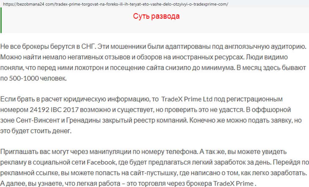 Легальность аферистов Трейд Икс Прайм вызывает сомнения