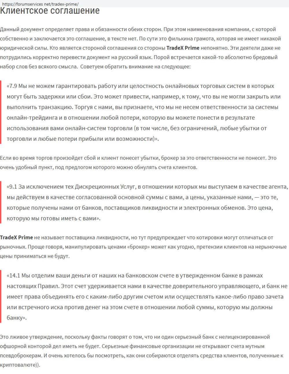 - Клиентское недосоглашение лохоприемника TradeXPrime